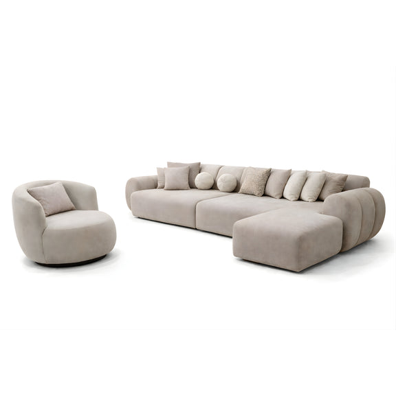 De zachte rondingen en minimalistische vormgeving zorgen voor een moderne, hotel-chique uitstraling. Ideaal voor ruime woonkamers en open leefruimtes waar comfort en design samenkomen.