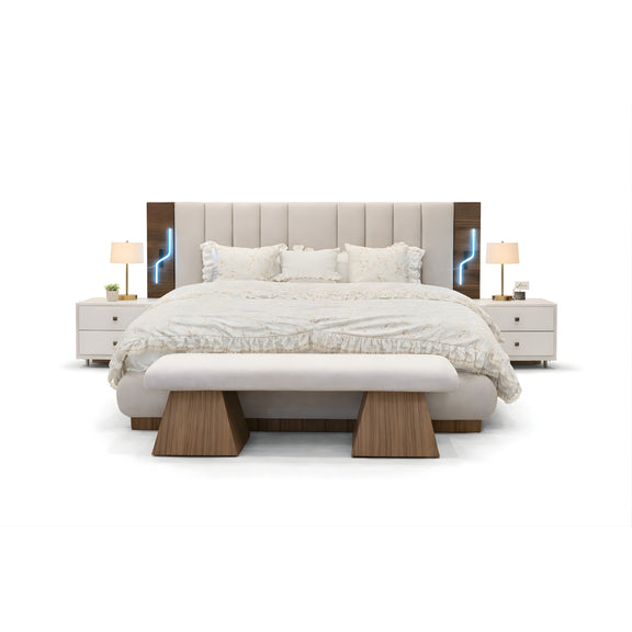 Het hoofdbord en de zitbank zijn afgewerkt met premium stoffering van topkwaliteit, gecombineerd met hoogwaardig schuim voor optimaal comfort.