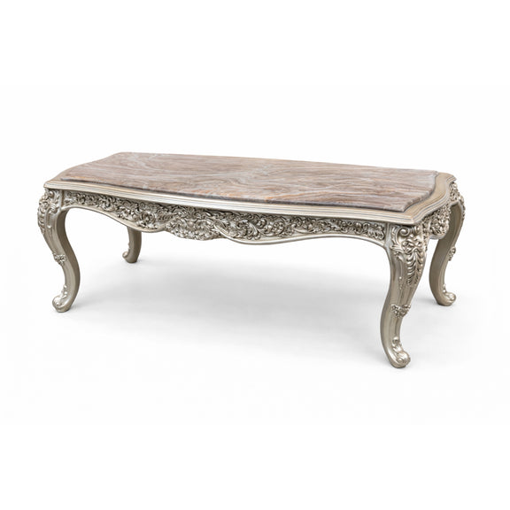 Het onderstel is rijkelijk handgesneden met verfijnde ornamenten en afgewerkt in een elegante luxe tint, wat zorgt voor een tijdloze uitstraling die perfect past binnen klassieke en chique interieurs.